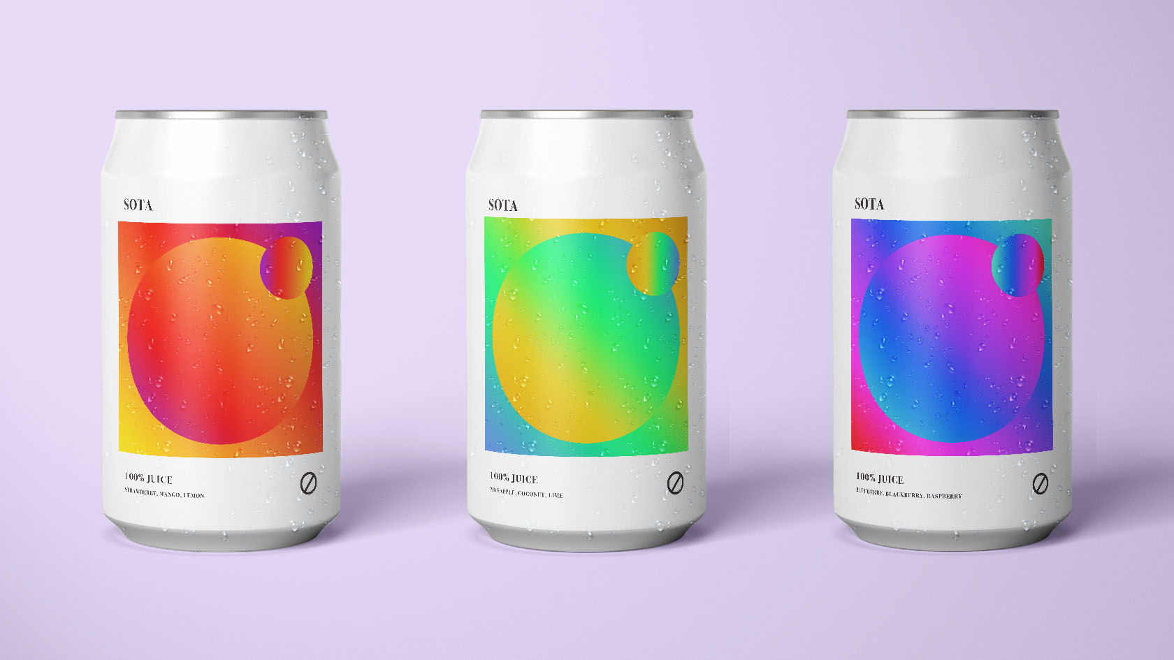 SOTA - State Of The Art - A new take on the average fruit juice. SOTA is 100% juice, that means no preservatives, no artificial colors, and no added sugars. Each flavor has an individual color scheme on an otherwise black and white can, making the packaging not only eye catching, but also representative of the flavor of the juice.
