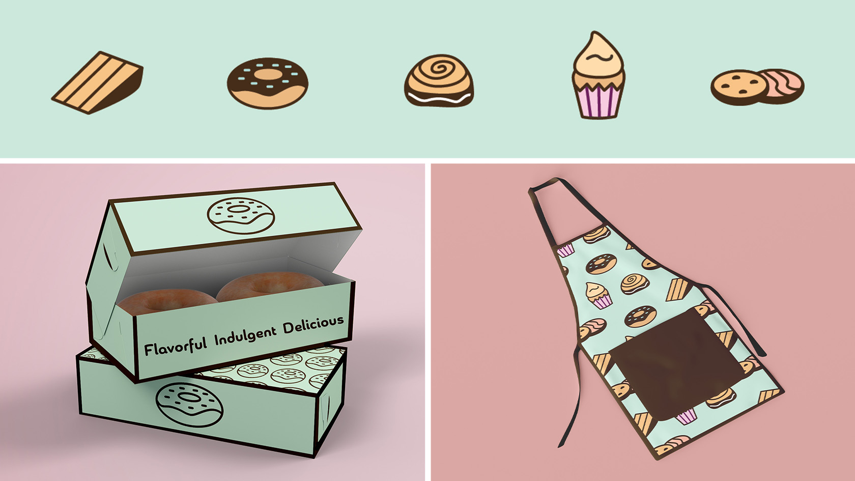 The goal of these illustrations created for Bloom Bake Shop in Madison was to create icons that are color blindness compliant. This design uses dark brown to define the edge against the blue background to make it easily accessible for someone with color blindness to see. These icons represent different bakery goods that are sold at Bloom Bake Shop and they create a way of using signage that is for everyone.