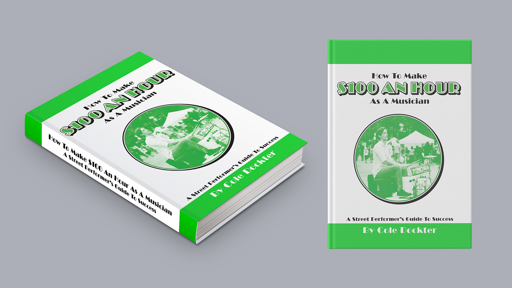 I designed an online-only book cover for musician and author Cole Dockter. He wanted it to feel modern and elegant. Although the book is online-only he wanted it to look as though it was a traditional book. I used an eye-popping green color to reinforce the idea of making money.